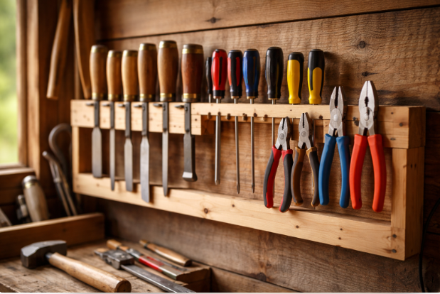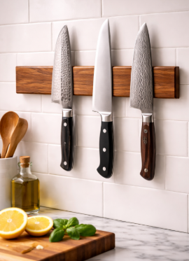 Store-bought magnetic strips are often made of cheap plastic. You can build a premium wooden version using a thin piece of scrap wood. This project is excellent for holding kitchen knives or keeping drill bits and metal hand tools organized on your shed wall.