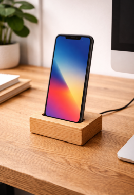 - How to Build It: Cut a block of wood to about 4×4 inches. Use a router or a table saw to carve a shallow slot across the top, wide enough to cradle your phone. Drill a hole straight up through the bottom of the block so your charging cable can feed through and sit flush in the slot. Sand it smooth and apply a clear coat.