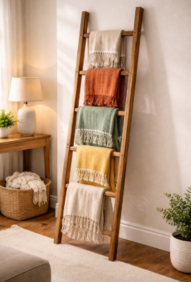 - How to Build It: Cut two long vertical pieces (the stiles) to about 5 or 6 feet long. Cut four or five horizontal pieces (the rungs) to about 18 inches wide. Angle the cuts on the bottom of the stiles at 10 degrees so the ladder leans flat against the floor. Attach the rungs using pocket hole screws from the back so the hardware is hidden. Sand heavily to ensure no blankets snag on splinters.