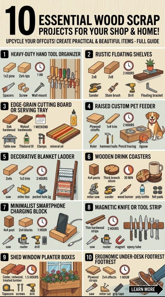 - Best Scrap to Use: Hardwood only (avoid pine or treated lumber for food surfaces).
